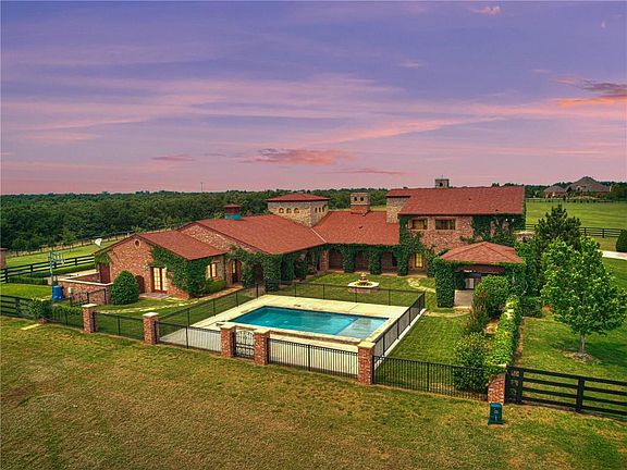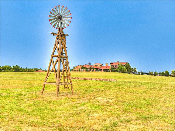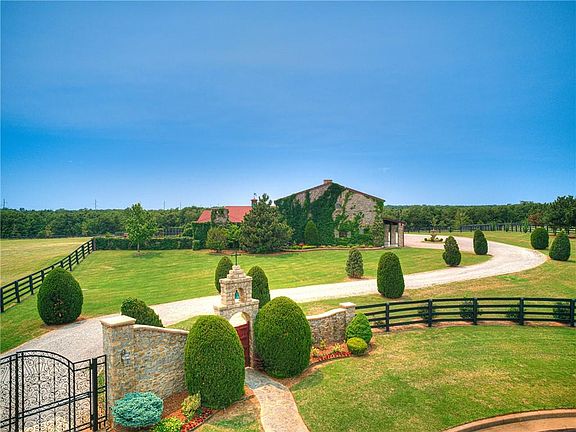This masterpiece 10-acre equestrian estate is the urban retreat you deserve. It's the Hearst Castle reimagined; a bold display of Tuscan Farmhouse splendor in the Oklahoma Countryside adorned with imported antique architectural artifacts. From the 200 year-old French tile to the fabulous reclaimed doors, you'll feel a world away while being only 10 minutes from I-35 & 2nd Street. 4 sumptuous suites will make you feel right at home. Some amenities include the fantastic outdoor living space, pool, attached guest casita, 40x60 shop, loafing shed, private pond and more! Not to mention geothermal heating and air to keep those utilities low, 20K generator, private 300ft deep well with 3 horse power pump servicing the pond, epoxy floor in the oversized 3 car climate controlled garage, and more! Fenced and cross-fenced, this property is ready for you! Plus, enjoy the gorgeous community of Quo Vadis II. Reserve your private tour today and experience all the enchantment this estate has to offer.