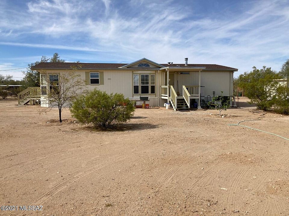 Come and enjoy quiet country life close to Saguaro Nat'l Park with lots of hiking trails to enjoy the beautiful scenery, house situated on a corner lot in a quiet area. Horses allowed as well as other livestock. 8'x40' roll off container for storage or ? and 8'x10' strg shed, fully fenced with 2 entry gates. Kitchen has lots of cupboards, newer ss stove, refer & DW, portable island (negotiable) breakfast nook, dining area and cozy liviing room. New ss sink in kitchen, new sinks in both baths. AC is 3-1/2 yrs new as well as propane furnace, lifetime warranty, Front porch nice for sitting and enjoying the sunset/sunrise with your morning drink. Also an $V sewer drain. Come see your new home.
