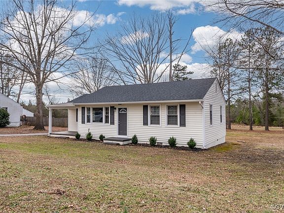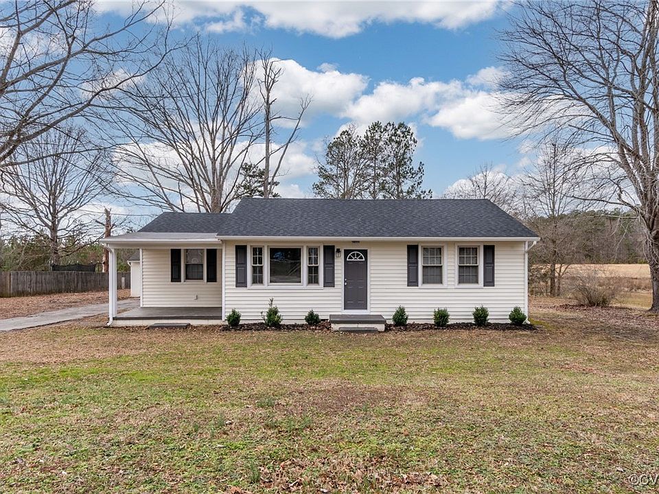 Recently renovated 3-bedroom, 1-bath Rancher in the quiet Town of McKenney, just off I-85 and Route 1. Step inside the home from the charming side porch and be amazed by the meticulous updates: Enjoy stylish LVP flooring throughout, including a striking herringbone pattern in the eat-in kitchen. The kitchen boasts stainless steel appliances, hickory cabinets, and a tankless high-capacity water heater. Relax in the beautifully remodeled bathroom with an upgraded shower/tub enclosure. This home also features newer siding, roof, gutters, windows, interior/exterior doors, and upgraded lighting. Major systems have been updated with newer plumbing, electrical wiring, HVAC ductwork, vapor barrier, and insulation which were all updated within the last 2.5 years. A detached oversized 1 car garage with electricity sits on the expansive half-acre lot. This is more than just a house; it's a move-in-ready home, Schedule your private showing now!