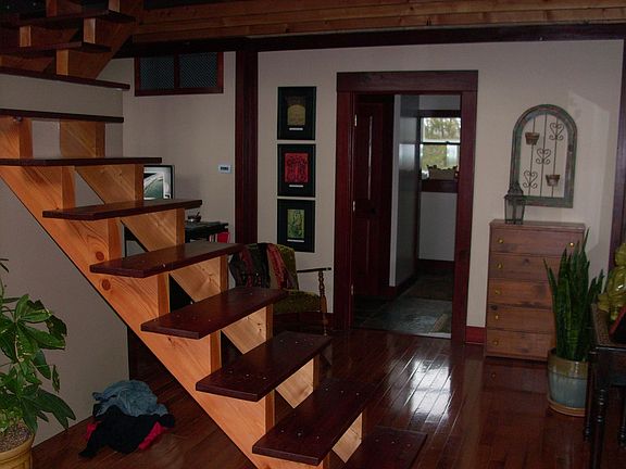 A lovely apartment in a private setting 15 minutes from downtown Columbia and the University. Perfect for professional or grad student. Lots of windows, private deck overlooking National Forest. Walk in shower, walk in closet, stainless appliances, washer and dryer. Deck overlooking national forest. The apartment is on the upper level so there are stairs.