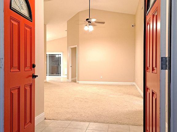 Freshly repainted custom built home in an amazingly private fenced corner lot and safe neighborhood. 13 foot vaulted ceilings with ceiling fans in every room. Walk in shower and tub in master with double vanities and towel cabinet. Matching, kitchen cabinets, bath vanities, door knobs and hinges, ceiling fans and kitchen appliances. Lot's of cabinets and storage throughout the entire house. Dual pane energy efficient windows with an additional sun screen to block that summer heat! 2-car garage, side gate for RV and trailer access. Owners took a lot of pride in this home and would love for a family to enjoy it while they are living away. Available to move in Immediately. Please apply here or contact for questions. Pets are ok. Property is on septic and has a propane tank for heating. You will be responsible for all utilities.