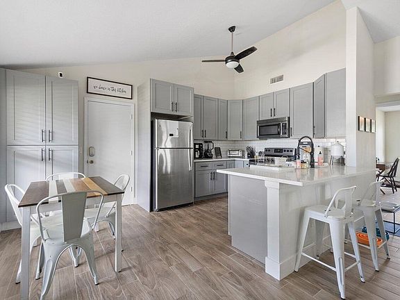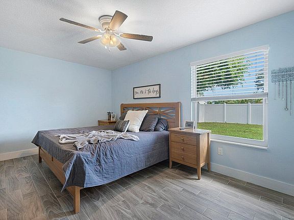 This one of a kind country style cottage home is ready for you! 2 bedroom/2 bath with open farmhouse appeal. New grey wood-like flooring awaits you when you walk into the front door. Open kitchen with newer appliances, large covered screen patio overlooking a very generous fenced in backyard. Impact glass windows. Immaculate 1 car garage, redone with new flooring. Neighborhood park. within the community. Shopping close by, along with restaurants. No HOA,