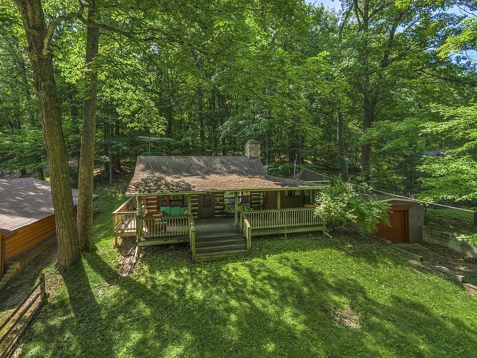 Escape the daily stress of city life and indulge in a serene weekend getaway or a rejuvenating retreat at this charming and cozy cabin. Step inside to discover a delightful living area adorned with a fireplace, a well-equipped kitchen, and a spacious bedroom. Outside, a generous deck awaits, offering breathtaking views of the lake and serving as an idyllic setting for outdoor entertainment, relaxation, and savoring the beauty of sunsets and sunrises. For those seeking solitude, a private deck in the back provides the perfect sanctuary to unwind and immerse oneself in a captivating book. Whether you're considering a wise investment or yearning for a splendid vacation home, this cabin presents an irresistible opportunity.