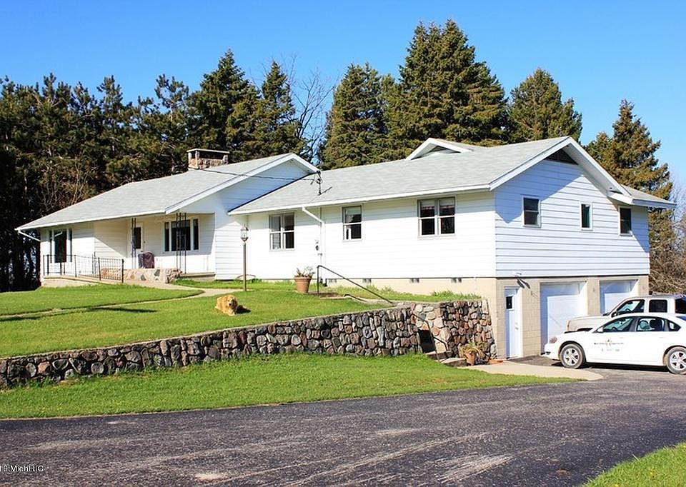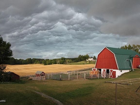 Beautiful vista from this picturesque 80 acre m/l, 4 bedroom/3 bath farm south of Cadillac,Mi. Vintage barn with a brand new steel roof and an implement shed for equipment. Home features a walkout basement, stone fireplace in family room and double sided stone fireplace in finished basement, attached 2 car garage, appliances included, paved drive off from a paved road. Property has recently seeded hay fields and additional tillable acreage, fenced pastures for horses, sheep and cattle plus 40 ac res m/l of maple hardwoods with some mixed species and pine.