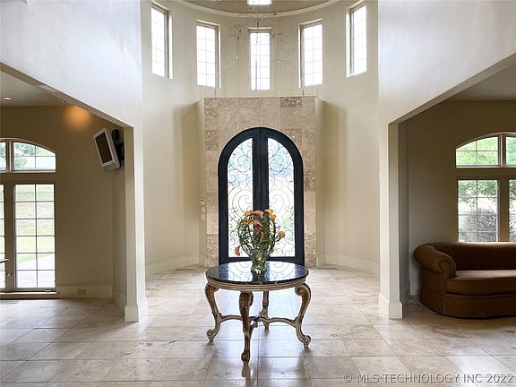 Jenks luxury estate with 5+/- acres exquisite extra. Media room, formals, home office and hobby rooms, 2 Masters, 2 bonus rooms. Hard wired whole home generator, smart home, master suite with oversized spa shower & sauna. Cabana and infinity pool. Additional land available.