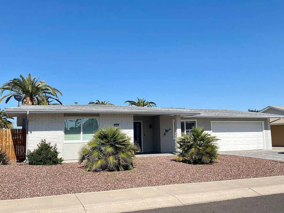 FOR IMMEDIATE OCCUPANCY COMPLETELY REMODEL 2 BEDROOM/2BATHROOM 2 CAR GARAGE HOME. SHUTTERS THROUGHOUT REMODELED KITCHEN WITH QUARTZ COUNTER TOPS, MARBLE BACK SPLASH, STAINLESS STEEL APPLIANCES, LIGHTING FIXTURES & CEILING FANS BONUS/ LAUNDRY ROOM. NEW GARAGE DOOR & OPENER. LARGE COVERED PATIO COBBLESTONE & EXTENDED PATIO AREA, PRIVATE BACK YARD BLOCK FENCE. COBBLESTONE DRIVEWAY.HOME IS ACROSS FROM MT. VIEW REC. CENTER. 7 SUN CITY REC. CENTERS, GOLF COURSES, POOLS, FITNESS CENTERS, PICKLE BALL, TENNIS & BOWLING. EASY ACCESS TO FREEWAY, SHOPPING, RESTAURANTS, MEDICAL AND MORE A MUST SEE PROPERTY