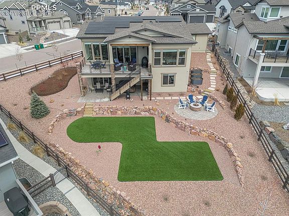 This home is a rare opportunity to live in the lap of luxury and close to everything! This home sets in Cordera, a master planned community with schools, parks, pool, community center and events all as part of your everyday life. In addition, you are minutes away from shopping, lifetime fitness, multiple hospitals, and everything to make your everyday easy. The home itself is a masterpiece created by the luxury builder Saddletree. The owners spared no expense when designing this home and you will see it in the finishes and upgrades throughout the home. There are way too many to list here! The home sets on one of the largest lots in Cordera backing to trails with gorgeous panoramic mountain views from the main family room area and beautiful Pikes Peak views from the deck, fully fenced yard, master, and even one of the basement bedrooms! The main level features 11' ceilings with LVP flooring throughout. There are 2 bedrooms + Extra 3/4 Bath + office + mud room on the main level. The mud room is built out with cabinetry, utility sink, storage, and room for a second fridge. The garage features the 4' extension. The kitchen features floor to ceiling cabinetry, the largest island possible, large pantry, double ovens, six burner gas cooktop, pot filler, and hood vent. The master retreat features amazing Pikes Peak Views, huge custom shower with dual heads, freestanding tub, and custom closet that connects to the laundry. The basement features 10' ceilings in the rec room with walk out to covered back patio, stunning wet bar and powder room. There are 3 bedrooms: 1 ensuite and 2 with a "Jack and Jill" set up and a generous storage area in addition. There is a solar system on the roof to keep utilities at a minimum and an included hot tub on the lower level for luxury. Top it off with a maintenance free design of stucco and stone exterior with concrete deck with wrought iron rails, AstroTurf yard, and you have years of maintenance free living. Don’t miss it!