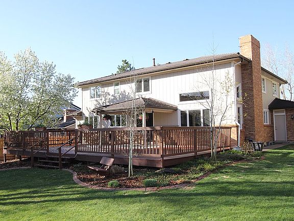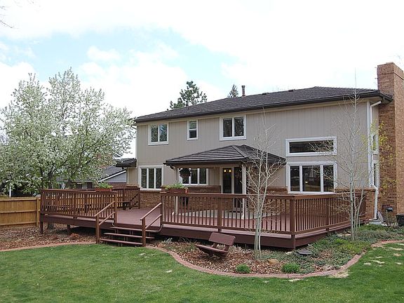 This completely remodeled 5 bed, 4 bath Hills at Cherry Creek Vista South home is centrally located in DTC off of Orchard and I-25 and sits on one of the largest lots in the area. The heavy lifting is done; the home features new concrete, flooring, rails, paint, kitchen, Clopay garage doors, fence, concrete extruded edging and a stone coated steel roof. Inside, the open stainless / tile granite kitchen with Elfa pantry adjoin with the family room and cathedral ceiling… a perfect bright and open space for entertaining or just enjoying time with the family. Formal dining room and separate living room great for larger gatherings. 4 bedrooms and 2 bathrooms upstairs, and another large (non-conforming) bedroom downstairs with its own bath. Basement recently remodeled and set up perfectly for home theatre. Main floor laundry with utility sink. Back yard is an entertainers dream with the 1,100 sqft deck, picnic table and multiple play areas. Property is perfectly situated for snow melt on the driveway, plus low sun exposure during the evenings. 2 locking sheds in back yard and built-in natural gas line for a large gas grill. Raised, irrigated garden bed. Insulated, oversize 3 car garage with mechanics floor, Clopay doors and Elfa shelving. During the summer, join the community recreation center (small fee), which features tennis courts, and 3 separate pool areas, including a Nickelodeon-style kids pool and shaded cabanas. Walking distance to parks and restaurants... short walk to Cheery Creek Reservoir and Cherry Creek bike path. Easy drive (or a nice walk) to Arapahoe and Orchard Light Rail stops. Home feeds into the best of Cherry Creek schools (High Plains Elementary, Campus Middle, Cherry Creek High). Key features: - Completely remodeled - New carpet, paint and flooring - Brand new concrete - Newer stone-coated steel roof - Insulated 3 car garage with mechanics floor, insulated Clopay garage doors and Elfa shelving - Dream back yard with 1,100 sqft finished deck - 4,200 finished sqft - 5 bedrooms (one non-conforming) - 3.5 bathrooms - Remote fireplace - Stainless / tile granite kitchen with Elfa pantry shelving - Finished basement and second family room - TONS of storage - Huge lot w/ front/back sprinklers, concrete extruded edging and new fence - Central air plus attic fan, dual hot water heaters