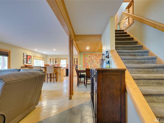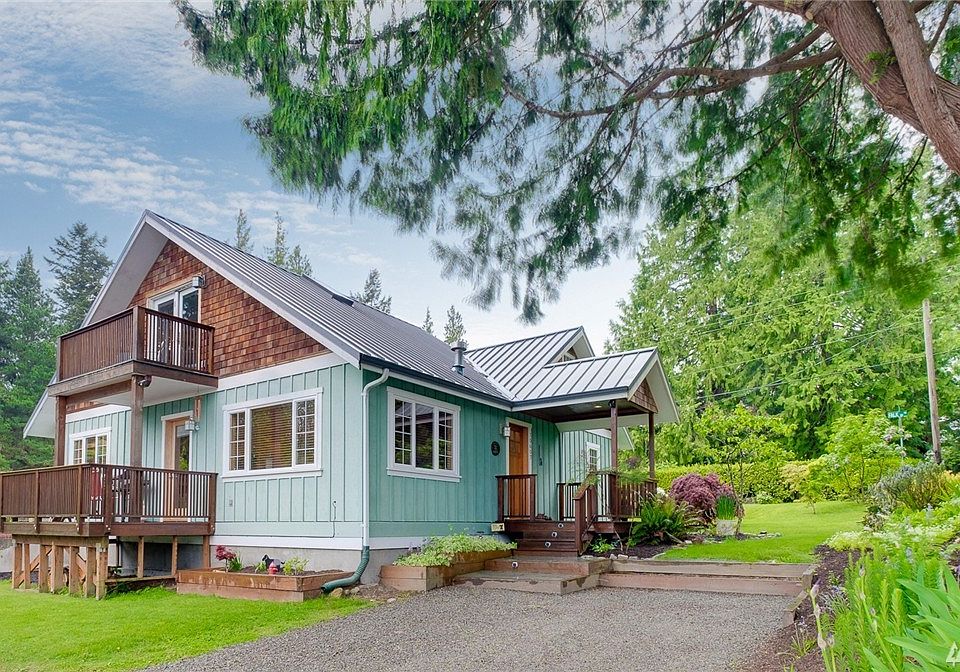 Located in the heart of Rolling Bay, this charming 3 bedroom home has it all. Enjoy the views from the living room and master suite. Large open kitchen with custom-crafted live edge eating bar. The master suite hosts water views and reading nook. Ample storage throughout, including 600 sqft of unfinished basement. Beautiful concrete radiant heat floors. Immaculate 352 sqft guest cottage or home office takes this beautiful and functional home over the top.