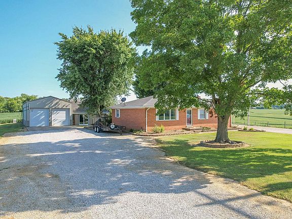 Nestled on a picturesque 1.56-acre lot with sweeping pastoral views, this 4 bedroom, 2 bathroom ranch-style home offers a perfect blend of space, comfort, and convenience. The main floor invites you into a bright living room with a large window and flows seamlessly into the spacious eat-in kitchen. Here, you'll find a breakfast bar, durable vinyl plank flooring, and room for a formal dining table, making it ideal for both casual meals and entertaining. All three main-floor bedrooms boast walk-in closets, while the third bedroom, currently used as a home office, features convenient access to the back deck. The expansive finished basement is a standout feature, offering two large living spaces perfect for gatherings. Additionally, the basement includes a fourth bedroom and a full bath, along with a laundry room that provides extra storage. The walk-out basement opens to a spacious backyard, with a stairway leading up to the deck, ideal for outdoor living. Completing this impressive property are two large outbuildings, offering generous storage and parking options, ensuring all your needs are met.