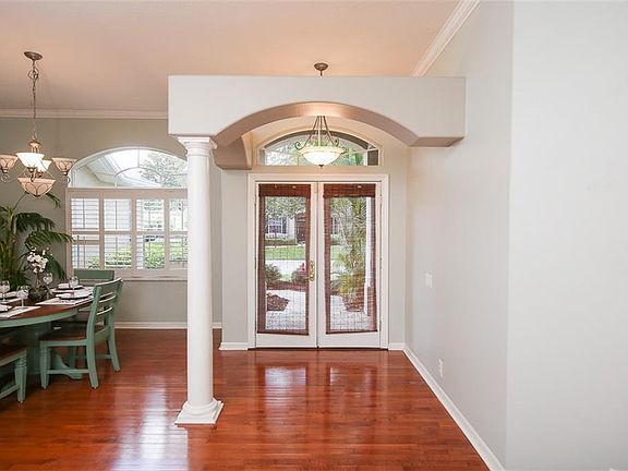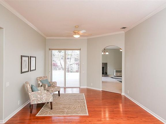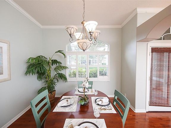 - Interior Features: Ceiling Fans(s), High Ceiling(s), Crown Molding, Walk-In Closet(s), Window Treatments, Open Floorplan, Solid Wood Cabinets, Eating Space In Kitchen, Kitchen/Family Room Combo, Dry Bar, Stone Counters, L Dining