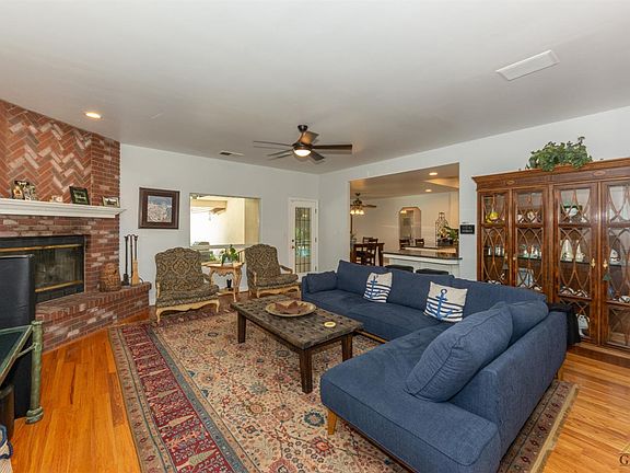 This is a must see!! With the front porch welcoming you into this lovely home, you will want to move right in. There is a formal living room and formal dining room, plus the wonderful great room with fireplace and a view of the backyard and pool. The fourth bedroom is no longer a bedroom, but a wonderful office/study off the master which would be perfect for your workout equipment or office. There is a good sized laundry room near all the bedrooms too. The cabinets through out have been newly painted. New flooring extended from kitchen to guest bathroom. The pool is beautiful with a full covered patio. Backyard also includes a completed dog run perfect for any size dog. The 3rd car bay of the garage has been set up as a work room.