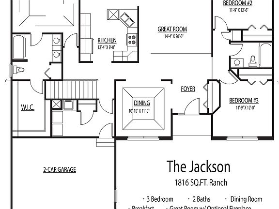 1,816 Sq. Ft., 3 Bedrooms, 2 Baths, Dining Room, Dinette, Great Room, Basement, 2 or 3-Car Garage
