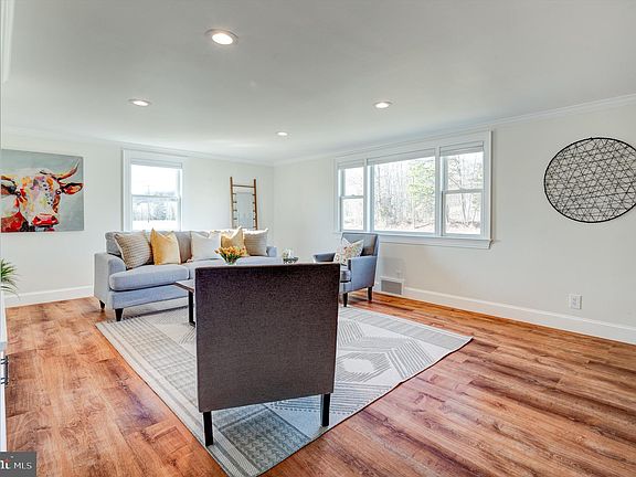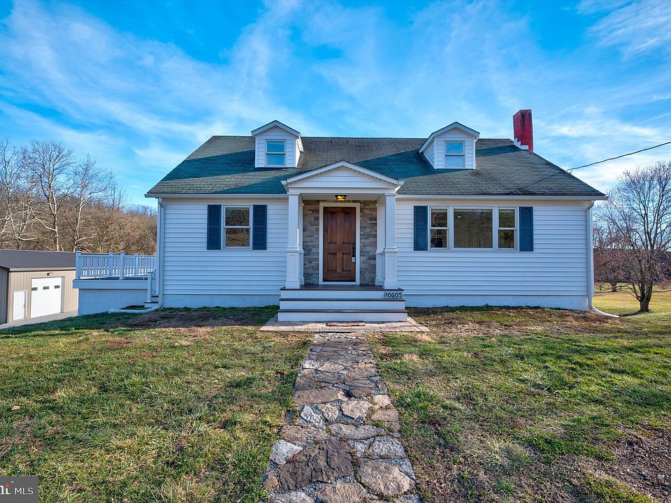 Beautiful updated Cape Cod on 2.10 acre lot with creek, plus a 36' x 64' building with paint booth and 10x10 garage door. Walk into large bright living room with custom built ins, recessed lighting, and large picture window. Custom kitchen with dining area. Granite counter tops, sizable island with sink, wooden counter top, and space for stools. New stainless steel appliances and stainless steel range hood. Large walk in pantry with pocket door, plenty of shelving, and a space for your stand up freezer or extra refrigerator. Modern mud/laundry room with built ins, sink, and cabinets. Master bedroom with full bath, double vanity, and stand up shower. Walk in closet with custom shelving galore! Two bedrooms on second level with more built ins and half bath. Lower level unfinished with one additional bedroom. Basement is a walk out to covered porch. This home also includes a deck on the side and a screened area to enjoy the outdoor scenery. One car attached garage, Anderson windows, new siding, heat pump 2020, wood furnace, paved driveway, new front load washer and dryer, water heater 2021, and more!!! Four miles from town of Clear Spring and 1.8 miles from I70