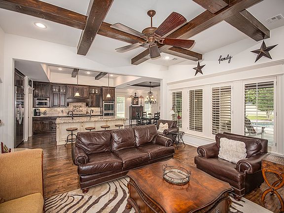 High-End Custom w gorgeous Pool, Outdoor Living & FP on private half-acre in gated Jenks SE! Exotic Granite, hand-scraped hardwds, plantations. Fabulous Master w spa-style Bath & Guest down. Chef's Kitchen, handsome Study/Flex + huge 3-Car w work area!