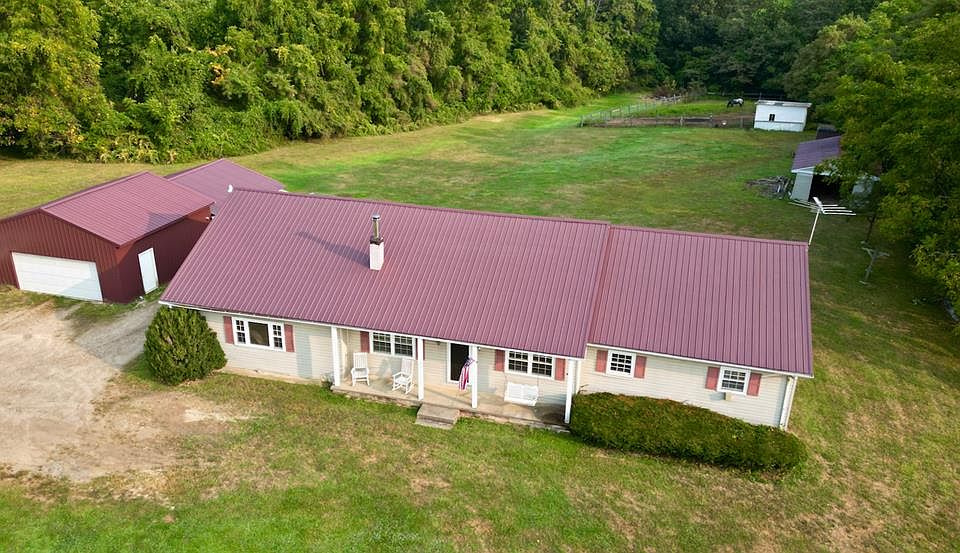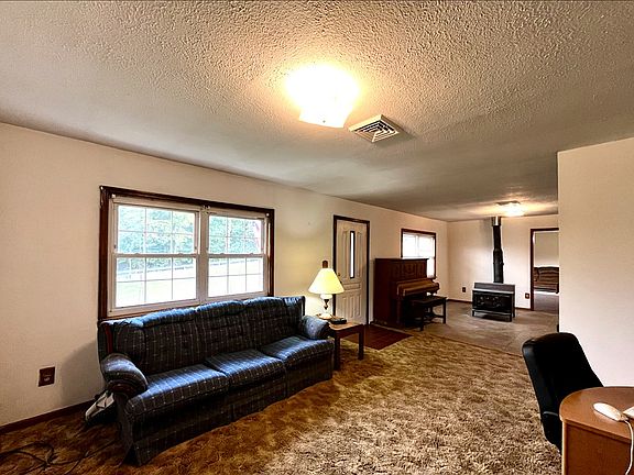 This 3-bedroom, 2.5-bath home sits on 4 acres, offering plenty of space to enjoy, both inside and outside! With 2,462 square feet all on one level, the layout features a large kitchen that leads to a dining room and three cozy sitting areas. You'll appreciate the convenient laundry room, as well as heating from both a wood-burning stove and a new heat pump. The roof is less than 10 years old for added confidence. Outside, the property includes a detached 2+ car garage, outbuildings for storage, and a small fenced area for horses. The partially wooded land provides a nice mix of open and shaded areas. Perfect for those seeking room for animals or the start of a small homestead, this versatile property is an opportunity waiting for you.