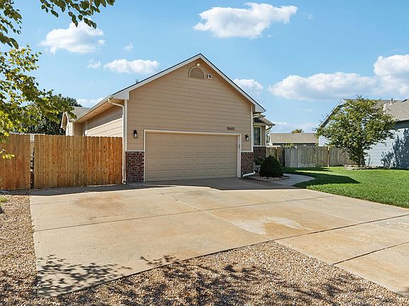 Welcome Home to 10605 W Lamp Cir, Wichita, KS! Located in the desirable Goddard USD 265 School District, this home sits on a quiet cul-de-sac with no through traffic, offering a peaceful and safe environment. Enjoy convenient access to the HOA amenities, including a swimming pool, playground, walking path, and a pond. The home features 4 bedrooms, 3 full bathrooms, and a 2-car detached garage. The private, fenced backyard offers plenty of space, complete with a storage shed, sprinkler system, and a mature tree for added shade. All kitchen appliances stay, including the refrigerator, dishwasher, oven/stove, and microwave. There is a main floor laundry room, bedroom, full bath with tub/shower combo and a spacious master suite featuring a soaker tub, separate shower, and double sinks. Head downstairs to the finished basement, where you'll find a large family room—perfect for movie nights with family and friends—along with two additional bedrooms, both with walk-in closets, and a full bathroom. Recent updates include a brand- NEW ROOF on both the house and shed, installed today! New gutters and window screens will also be replaced shortly. Be sure to explore the property’s dedicated website, 3D Virtual Tour, Interactive Map, and Floor Plan. Don’t miss this fantastic opportunity!