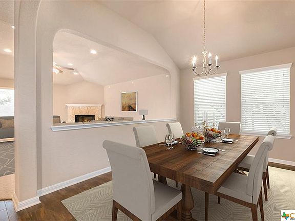 Coveted cul-de-sac lot backs to a heavily treed, restricted green belt! This beautiful, move-in ready Triana home features all bedrooms down, split floorplan with plenty of privacy, wood-ook tile on main floor, dedicated study, large island in kitchen with 42" cabinets and granite, crown moulding, covered patio, and a huge gameroom with a half bath upstairs. The neighborhood offers controlled access, a community pool, and a playground. Located in Helotes near NISD Schools and Loop 1604.