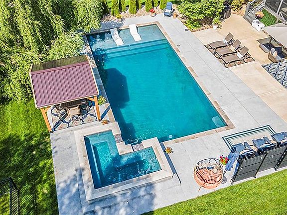 Welcome to your luxurious retreat in the heart of Staley Farms. This magnificent 5-bedroom residence embodies the perfect blend of elegance, comfort, and modern convenience, offering an inviting atmosphere and an array of upscale features. Step inside and be greeted by the grandeur of vaulted ceilings and an abundance of natural light, creating an airy and welcoming ambiance throughout the home. The spacious kitchen is a chef's dream, complete with a large island, farmhouse sink, and coffee bar – perfect for both culinary adventures and casual gatherings with loved ones. Gather around the see-through fireplace in the great room, extending seamlessly to the covered deck, where you can enjoy al fresco dining and breathtaking views of the lush surroundings. For added comfort, the screened deck features a built-in TV cabinet, creating the ultimate outdoor entertainment space. The home boasts a plethora of upgrades, including new exterior and interior paint, luxury vinyl plank flooring, and new light fixtures. Indulge in relaxation in the master suite, where the laundry room conveniently connects to the expansive walk-in closet. The lower level offers a recreational haven, complete with a wet bar featuring granite countertops, dishwasher, fridge, sink, and microwave – perfect for entertaining guests or unwinding after a long day. Step outside to discover your own outdoor oasis, featuring a brand-new 40'x20' Quartz Scape Heated Pool and an 11'x11' spa surrounded by Coolcrete decking and mature landscaping. The expansive corner lot offers privacy and serenity, with a new fence, outdoor cabana, and recreational space for endless enjoyment. With its impeccable craftsmanship, luxurious amenities, and unparalleled attention to detail, this Staley Farms residence is the epitome of refined living. Don't miss your chance to experience the height of comfort and sophistication – schedule a showing today and make this dream home yours.