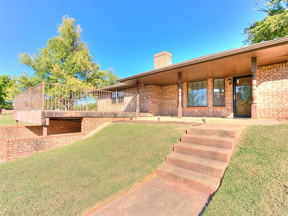 Escape to country living while enjoying the convenience of easy access to the city! This beautiful, well-maintained 3-bedroom, 3-bathroom home is nestled on 5 sprawling acres, offering the perfect blend of peaceful rural life and modern amenities. The beautifully-situated open space is perfect for enjoying nature, outdoor activities, or even expanding with outbuildings or a garden. No HOA and no restrictions, giving you complete freedom to use the land as you wish. The layout of this spacious home offers a comfortable living space for the family, with a kitchen that opens into the dining area and a large but cozy living room with bay windows. A split floor plan adds additional appeal. Enjoy the tranquility of country living, while being just minutes from the Kilpatrick Turnpike for quick access to city amenities, shopping, dining, and more. Ample space for parking, perfect for RVs, boats, or additional vehicles. Room to build, expand, or customize. Front and back driveways, two wells and septic systems on the property (main well equipment just updated and main septic recently emptied). Additional concrete pad currently has mobile home on it that can stay or be removed before closing. Rare for Oklahoma, the home includes a basement of 378 square feet that is IN ADDITION to the 2148 above ground area. Basement includes a full bathroom and its own entrance - ask about the secret storage area! Mustang schools!