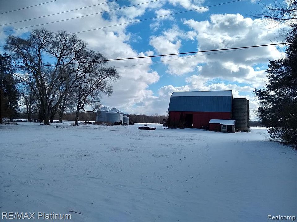 Natural gas and city water at road. Hip roof barn and silos with lots of potential, 3 grain bins with about 13,000 bushels of storage-1 is a a dryer bin. Beautiful woods with trails. 115.4 tillable acres with some field tile. Drains through property. So much potential with this property.See drone video of property. Click on link https://youtu.be/SZTYXX8JpAY