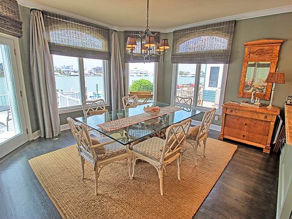 Beautiful BAYFRONT home with western exposure on a wonderful harbor offering open water views and walking distance to town and beach. The two story home has a traditional and open floor plan that flows to expansive water front decking and fabulous fixed dock over the bay. Virtually every surface has been upgraded with custom cabinets, built-ins, hardwood floors, granite tops, high end appliances and beautiful furnishings. The home is strictly personal use, never rented and it shows! Enter into the marble foyer and the bayviews simply explode. The entire great room is bayfront with views from every angle. The spacious kitchen has custom zebra wood cabinets, granite tops with plenty of work space. The bayfront dining area is generous. The water front family room has custom cabinets, gas fireplace, gentleman's bar with freezer drawers and custom built-ins. First floor bedroom has a private deck and access to a hall bath with a gorgeous custom, mahogany vanity and marble floor. The floors are beautiful, richly stained oak throughout the common area. Second floor has two guest bedrooms, hall bath and a substantial master bedroom suite with sensational water views. The master opens to an expansive water front den with gas fireplace and custom cabinets. The den could easily be converted to a fifth bedroom if needed. A separate staircase takes you to a fabulous roof top deck that would be perfect for an evening cocktail and sunset experience. The home was perfectly designed for views interior and exterior entertaining and the deck space is extraordinary. Other features include two outside showers, ample storage, garage, vinyl rails to match the color of the home, electric awning, awesome docking and easy access to the inland waterway. The home as well as the bay living experience and convenience that you will enjoy here is sensational!