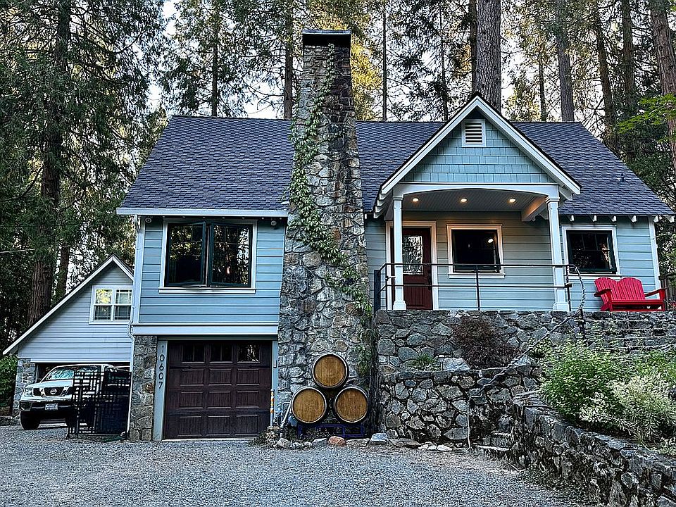 Main house: 1,344 sf, 2 bedroom, 2 bath with a library/office alcove upstairs and a cellar. Living room features a gas insert fireplace and the dining room has built-in cabinets with deep shelves. Both garage and cellar are extra deep w/ample storage & large parking area. A finished two room studio with full bath is located above the detached two car garage: ~390 sq. ft. Wet bar with granite counters, mini-split HVAC, laminate floors, french doors, dual pane windows and custom tiled shower.