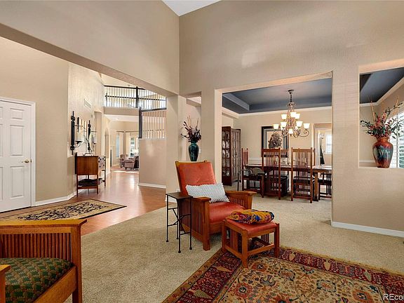 Unbeatable two-story home nestled on a private cul-de-sac in Legacy Ridge! This remarkable home backs to Legacy Ridge Golf Course 10th Fairway and features sensational panoramic mountain views. Professional landscaping with large boulders amplifies the home's curb appeal. Step inside and discover a spacious and open interior enhanced with high ceilings and large windows that flood the home with natural light. The open floor plan is perfect for gatherings in the front living room or formal dining room. The chef's kitchen showcases an island, desirable butler's pantry, gorgeous granite countertops, stainless steel appliances with dual convection ovens and a convection microwave, and a charming breakfast nook with bay windows that overlook the stunning backyard. The family room includes an eye-catching fireplace and soaring double-height ceilings. Adjacent to the family room, find a dedicated home office with French doors. Head upstairs and discover the luxurious primary suite with a Cathedral ceiling, seating area, oversized walk-in closet, and a five-piece ensuite bathroom with a granite-tiled shower. A catwalk isolates the primary suite from the other 3 bedrooms. All bedrooms are generously sized, two separated by a Jack-and-Jill bathroom. The unfinished basement provides a blank canvas for you to customize and transform the space to your needs. This home is well equipped with two HVAC systems, each with a smart thermostat. Discover an entertainer's paradise in the spacious backyard! Relax after a long day under the covered patio or large concrete terrace while you listen to the peaceful splashes of the water feature and savor the 180-degree view of the golf course and mountains. Enjoy close proximity to highways, Westminster Promenade, Westminster Recreation Center, and MUCH more! Improvements since 2016 include new wood flooring in the family room, new kitchen appliances, new window coverings and shutters, new radon mitigation system, and new light fixtures.