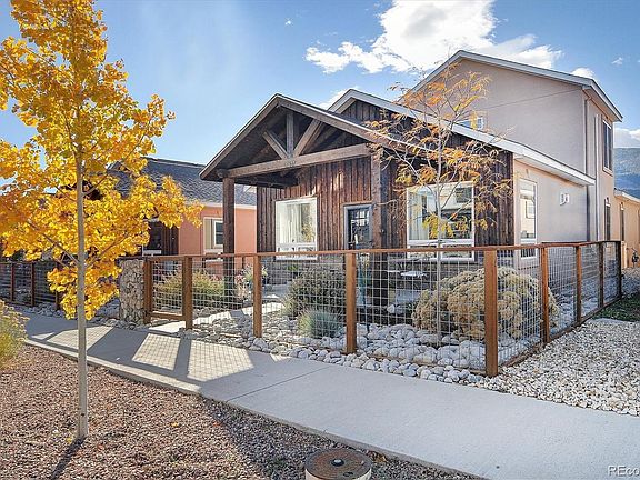 Close to everything that Central Colorado has to offer, beautiful Amish built construction and tastefully finished - this beautiful 3 Bedroom, 2.5 Bath home has it all! The current owners have improved this home with a custom backsplash, new gas fireplace, and fully fenced garden area with perennials and shrubs that create a lovely oasis in this up and coming neighborhood. Stay cool in summer with mini split AC units in each bedroom, also added by the sellers. Enter from the covered front porch into a great room with large windows, filled with natural light and contemporary colors and finishes. A large island with white quartz counters anchors the open kitchen which also features a huge pantry and stainless steel Samsung and GE appliances. The primary suite leads into a 5 piece bath with a 6 foot tub, walk in closet, dual vanity, and walk in shower with two shower heads. Heading up to the second level, a sunny reading nook greets you at the landing at the top of the stairs. Two bedrooms with mountain views and plenty of closet space share a full hall bath. This home is easy to maintain and thoughtfully laid out, with many details to make your life easier. The hot water baseboard heating and on demand hot water are both supplied by a gas Combi boiler. A radon system is already installed. Drip lines supply water to the front yard landscaping. You will love the 750-square-foot 3 car attached garage, fully finished and insulated with a utility sink and exterior access door, as well as a large concrete pad in the alley...and south facing exposure so the sun will do the snow removal for you in winter! The owners love riding the nearby bike trail to town or to Elevation Brewery, and being able to ride their bikes all the way back to the house from the Monarch Crest Trail. Don't miss out on this lovingly finished home in a great neighborhood with its easy access to all the outdoor fun!