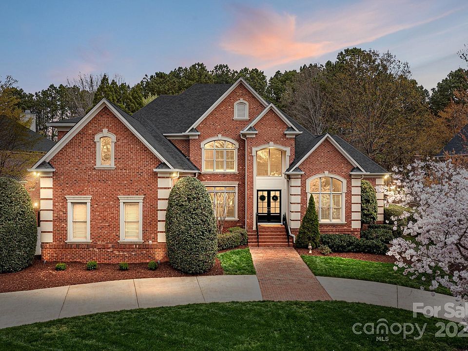Elegance is defined at this extraordinary custom brick Ballantyne Country Club home. Simonini designed 4 bedroom & 3.5 baths, overflowing w/high-end finishes & located on the 5th hole fairway. Enter the covered vestibule & French doors to vaulted ceilings, extensive millwork & arched doorways, dramatic curved staircase. Formal dining, office w/8' privacy doors. Great Room centered on the Fireplace & custom shelving, butlers bar- all with backyard views! Chef’s Kitchen w/HUGE island & windowed breakfast area. Light-filled sunroom w/direct access to expansive backyard. Large pantry & oversized laundry. 1st Fl Primary suite w/Spa bath- WI custom closets. 2nd Level:3 bedrooms/amazing storage. Bonus room is an Entertainer's dream: Billiards/Game room! Private fenced yard w/Pool, Spa & Grilling center- lovely travertine patio & lush 4-seasonal plantings. 3+ car garage/circular drive & cul de sac street. This warm, engaging & meticulous home is designed for STAYCATION Living & Entertaining!!
