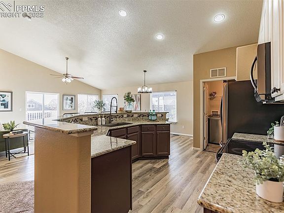 Sellers are all in…they cannot afford to not sell. You will be hard pressed to find a better deal in Colorado Springs, investor, first time home buyer, FHA, Conventional, Cash or VA or any other type of buyer. You hit the jackpot with this rare, highly sought-after, and amazingly valued Peyton residence that's simply too good to miss. Set in a beautiful golf course community and reduced in price since the original listing, it's a 5-bedroom, 3-bath move-in-ready home with plenty of space both inside and outside for entertaining. Take advantage of major upgrades throughout, including all-new luxury plank flooring, fresh sod, and a brand-new concrete driveway. Any avid cook would love the gourmet kitchen with its updated stainless steel appliances, granite countertops, and multi-seater island. Equal parts stylish and comfortable, the primary suite has a custom walk-in closet and an updated 5-piece bath with an on-trend barn door entry. A great hangout spot, there's a walk-out, fully finished basement. The fenced, landscaped backyard includes an expansive deck, and a horseshoe pit. Enjoy easy access to nearby military bases, a clubhouse, an indoor/outdoor pool, and so much more. With all this incredible abode has to offer, why wait? Come take a tour today