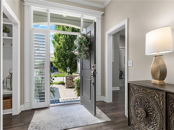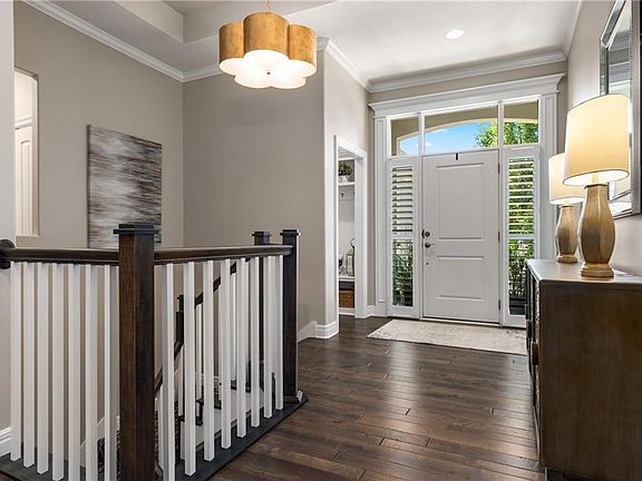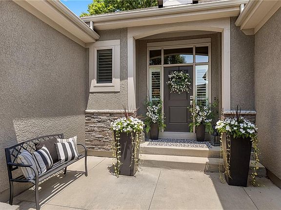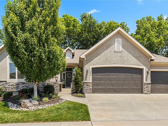 Stunning Reverse 1.5 Story with THREE Bedrooms on Main Level. Great Room with Fireplace. Chef's Kitchen has Beautiful Cabinetry, Stainless Appliances, Gas Cooking with Hood, Walk In Pantry, Granite Counter Tops & Huge Island + Spacious Dining Area. Luxe Master Suite Boasts Dual Vanities, Stunning Tile, a Large Walk In Shower & Free Standing Tub. Cool Light Fixtures. Plantation Shutters. Finished Lower Level Features Family Room, Wet Bar, Fourth Bedroom, Full Bath, Bonus Area & Two Unfinished Storage Areas. Private Inviting Front Courtyard. Relaxing & Private Covered & Screened Patio Overlooks Lush Landscaping & Mature Trees. Large Three 3 Car Garage. Blue Valley Schools. Welcome Home.