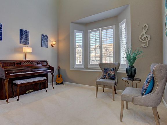 Location and Lifestyle! Embrace this move in ready home in the coveted Firelight neighborhood close to trails, Daniel's Park & Southridge Rec Center. This sought after Richmond Homes Floor Plan Boasts outstanding curb appeal on a quiet street that ends in a cul de sac. Enjoy the grand, vaulted entrance, bright open floor plan, designer carpet, paint & plantation shutters! Formal & casual living room & dining areas, main floor study/bedroom & expansive, light & bright open kitchen that includes double ovens, gas cooktop, microwave, center island & large eating space. Enjoy entertaining in your professionally appointed theatre room with projector and 120" screen! With CAT 5 Cable throughout and surround sound w/ Bluetooth you won't miss a beat! The bonus oversized bedroom in the basement offers a Murphy bed & built-in desk! You will enjoy entertaining in the well-manicured yard with stamped concrete patio, mature landscaping & fenced backyard. Enjoy 4 rec centers & all HR has to offer!