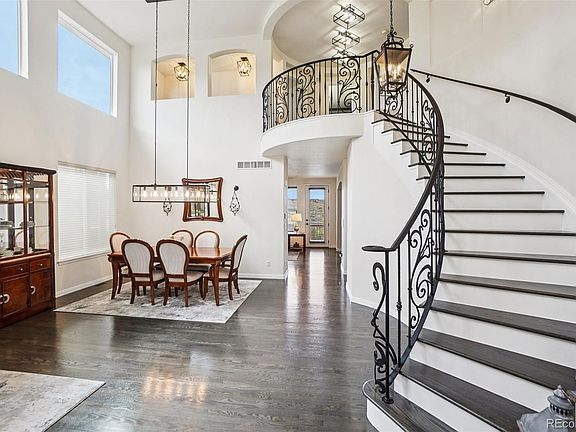 Welcome to this exceptional residence tucked away in a tranquil cul-de-sac backing to open space in the coveted Firelight neighborhood of Highlands Ranch. This 5-bedroom, 4-bathroom home effortlessly blends luxury, comfort, and newly remodeled modern upgrades—crafted for those who appreciate quality and sophistication. On the main level, a bedroom and full bath offer ideal accommodations for guests or multigenerational living. The chef’s kitchen boasts Whirlpool dual ovens and electric cooktop, Bosch dishwasher, LG refrigerator, and granite countertops, providing an elegant and functional space for entertaining. A central vacuum system with attachments and a house intercom with front doorbell add convenience. Enjoy evenings on the patio with lush green space and breathtaking west-facing mountain views. The newly finished walk-out basement backs to open space, and adds a bedroom, full bath, and access to a professionally landscaped yard—perfect for stylish entertaining. Retreat to the luxurious primary suite with a large luxurious closet and a spa-inspired en-suite featuring double vanities, soaking tub, and glass-enclosed shower. All bathrooms were fully remodeled with new flooring, fixtures, and lighting. Interior enhancements include new hardwood and carpet flooring, matte black hardware (2025), designer lighting, and a custom stair railing. Additional upgrades: new whole-house humidifier (May 2025), high-capacity sump pump (March 2025), freshly painted interiors (2021–2025), fireplaces serviced and new regulator installed on living room fireplace (May 2025), and a new storm door (July 2025). The deck and exterior renovated in 2021. This beautifully updated home is a rare find in one of Highlands Ranch’s most desirable communities—where elegance, comfort, and thoughtful upgrades come together effortlessly. Move in ready!