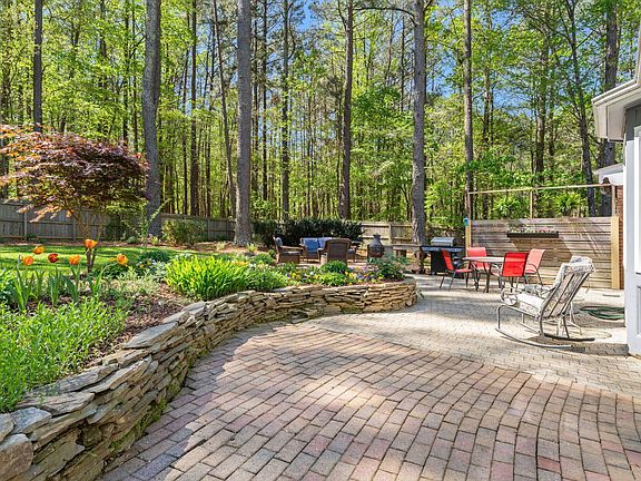 *Multiple Offers Received* Charming All-Brick Home on a Private 1-Acre Lot! Nestled on a beautifully landscaped, fenced lot, this lovingly maintained home offers serene outdoor living with paverstone patios, flower beds, a dedicated garden area, and a garden shed. Inside, enjoy the warmth of hardwood floors throughout and a spacious living room featuring a masonry fireplace, beamed ceiling, and built-ins. The large kitchen and dining area boasts a bay window with built-in bench, stainless steel appliances, tile backsplash, and opens to a bright 3-season room—perfect for relaxing or entertaining. The main floor primary suite includes a private bath and separate office space. Upstairs you'll find two additional bedrooms, a large bonus room, and a flex room with built-ins and closet—ideal as a 4th bedroom, playroom, or hobby space. A rare blend of privacy, charm, and versatile living space—don't miss this one! Convenient to I-540, shopping & dining.