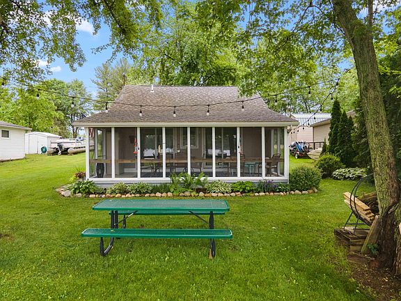 MULTIPLE OFFERS HAVE BEEN RECEIVED! HIGHEST AND BEST IS DUE BY 6/13/22 BY 7 PM AND A RESPONSE WILL BE BACK TO ALL INTERESTED PARTIES BY 6/13/22 BY 9 PM. BEAUTIFUL SUNSETS Are why Boaters from other lakes on the Waldron chain boat over in the evenings. You can enjoy right them right here at this UPDATED lake cottage..Low wake lake but load up the skis and tubes, it’s a short 10 minute drive to an all sports lake that you can boat over the channel to. This charming cottage can be your retreat from the hustle and bustle. Enjoy mostly year round as the mini split can heat/cool for comfort. Sleeps 6. New kitchen cabinets, loft rail, water heater and well pump in 2019. New loft carpet June 2022. New windows and loft added in 2006. Open concept with all the views from inside and from the wonderful screened in porch with epoxy coat flooring. There is a shed for storage and an attached 9x7 workshop. The cottage is in a Flood zone, but as you can see in the video, only some water collects in the grass close to the water when there’s a lot of rain.. Wired for baseboard heat but not hooked up. Utilities West Lakes sewer and LaGrange REMC