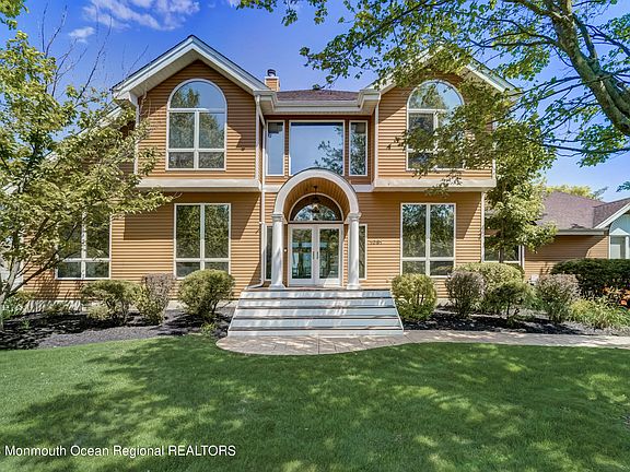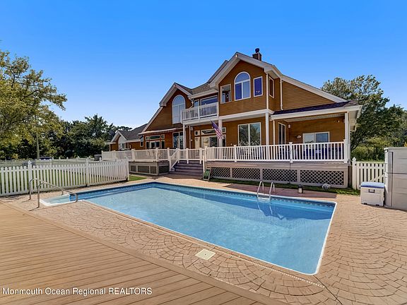 Waterfront Living Resort Style--spend your days relaxing in sun-soaked luxury with enough space for the whole family! The stamped driveway and walkways are lined with professional landscaping that leads you up to the grand front entrance. Open the double glass front door and enjoy the sun-filled, light, bright and open space with 20+ft ceilings and gaze ahead through your walls of glass to enjoy the fabulous water views. Wood floors carry you through the first floor where you have a 4-sided gas fireplace, a large living room, a ''game room'' with a vaulted ceiling, and an expanded formal dining area overlooking the deck and water views. An updated kitchen with granite countertops, in and under cabinet lighting, newer stainless steel appliances, and a pantry. A bedroom en-suite with a full bathroom and French doors leading to the deck is complete with a bar corner including a sink, refrigerator, wine rack, and glass hanger. Finishing the first floor is an additional room perfect for an extra bedroom or office space, a laundry/utility room with a laundry tub, a powder room, and direct entry from your oversized 2-car garage. The second floor features 2 spacious bedrooms with vaulted ceilings, huge windows and ceiling fans, and a full bathroom with tub. The huge master suite is equipped with a sitting room, oversized bathroom with double sinks, Jacuzzi tub, shower stall, and a closet suite, the private deck off the master is perfect for morning coffee or an evening cocktail. The third level with vaulted ceilings has a wine rack, refrigerator, and French doors to a crow's nest perfect for gazing up at the evening stars. The outdoor has a play land of entertainment options, from the heated inground pool with a stamped concrete surround, a newer dock and bulkhead just the right size to park your boat, Approximately 75 ft. of deck with options of a covered overhang, sun, or remote controlled retractable awning, a natural gas BBQ line makes it perfect to serve all your guests. A beautiful lawn is kept from a well-fed sprinkler system with a new pump. You have a whole house generator including the AC! So many features to list from AV speakers throughout, Anderson windows, 2 attic storage areas and so much more!! So conveniently located from the park down the road and major roadways just minutes away.