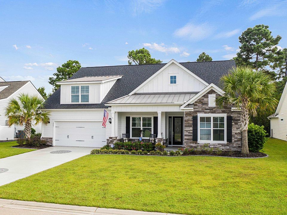 Experience the perfect blend of luxury, convenience, and outdoor recreation at 1061 Brentford Place. Nestled in the highly desirable, gated Amherst section of Berkshire Forest, this stunning, custom-built 4-bedroom, 3.5-bathroom Tyler Thorn residence offers a blend of elegance, functionality, and privacy. Upon arrival you'll immediately be captivated by the home's striking curb appeal, showcasing stacked stone, Hardiplank board and batten siding, and a standing seam metal roof. Step inside and be greeted by 10-foot ceilings which create an open, spacious atmosphere for both living spaces and main level master and guest bedrooms. The chef's kitchen features birch cabinets with soft-close doors and drawers and beautiful granite counters. Entertain guests or relax on the serene screened-in porch, surrounded by the lush landscape of your private backyard. Berkshire Forest is an established natural gas community in the incredibly popular Carolina Forest area of Myrtle Beach. Enjoy a short walk or golf cart ride to the community's clubhouse, two amenity centers, resort-style pool, lazy river, nature trail, dog park, tennis courts, pickleball courts, walking trail, fishing lake, and much more. Don't miss your chance to experience life in Carolina Forest at its finest, call to schedule your showing at 1061 Brentford Place today!