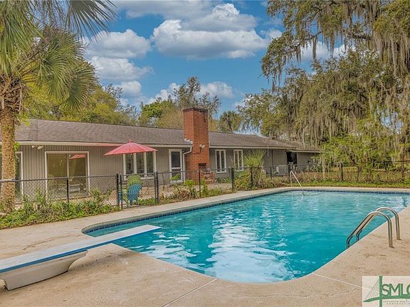 RARE FIND! This secluded coastal paradise is ready for you to come give it your own personal touch! 5 bedrooms plus a bonus and 3 full baths! Master suite features hardwood floors and two walk-in closets! 2 of the bedrooms share a Jack & Jill bathroom. This large ranch style home sits on nearly 3 ACRES with a beautiful marsh view boats can be seen making their pass in the distance. Enjoy that view while you spend many days soaking up the sun in a the in-ground pool and patio! Large family room with lots of light and views of the marsh and cozy den with stone wood-burning fireplace. Convenient to local restaurants for some of Georgias best seafood and Dariens beautiful river front. 2 new water heaters and both HVACs are less than 5yrs.