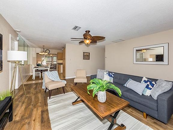 This 3 bedroom, 2 bath home has been COMPLETELY REMODELED! As you step into this home, you will notice the luxury vinyl plank floors and fresh paint! The kitchen has been completely renovated, with newer cabinets and countertops. The spacious master suite has its own renovated bathroom with jetted tub, and a large walk in closet with plenty of shelving! The guest bathroom has been updated and features a walk-in shower, new vanity and fixtures, and high-end marble flooring. Bring your furry friends, as this home is completely fenced-in with a privacy fence. There is a 2 car garage and extra parking to the side for a boat or RV! NEW ROOF and NEW SEPTIC DRAIN FIELD! When you buy a home in this neighborhood, you gain access to a private beach with ferry access and boat ramp! Shamrock Park is also close-by with playground, nature trail, basketball, tennis courts & entry to the Legacy Trail! In addition, the Civic Association on Alligator Dr. offers events & social opportunities. This community is not deed restricted, and there are no HOA or CDD fees!