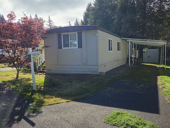 Come enjoy this Quietly nestled single wide in a small senior community. Very quiet and peaceful. House has an open kitchen concept with 2 bedroom. Also has 2 shed plus a large back yard and carport. Ideal downsized living with tranquil nature sounds & minimal maintenance. Buyer is responsible for power expense, space rent & garbage. Come see! Priced to move. Easy I-5 Access.