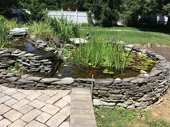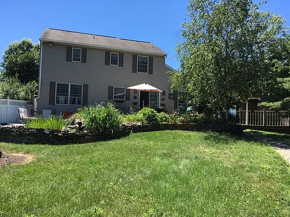 Beautiful 3 bedroom, 2 1/2 bath stone front colonial on 1/2 acre. Full basement with outside entrance. Hardwood floors in the formal living, dining, foyer, hall and 1/2 bath. Nice kitchen with all stainless steel appliances and gas cooking leading to a nice size family room with a propane stove or the 18’ x 20’ concrete patio over looking a well landscaped lawn with koi pond and trellis. Upstairs is the master bedroom with walk in closet and master bath, 2 additional bedrooms with another full bath and a laundry room with linen closet. Also has an attached 2 car garage with storage above, a 8’ x 16’ shed with a small deck for grilling.