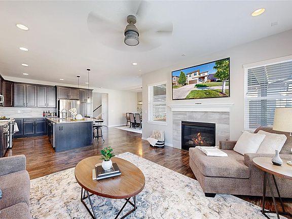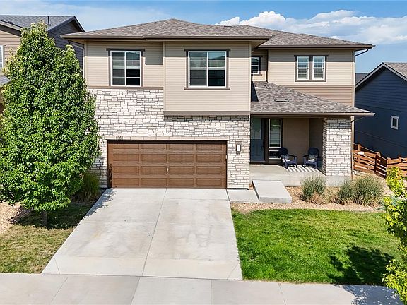 Beautifully designed 5-bed, 5-bath home located in the desirable Colliers Hill community. This stunning residence offers a blend of modern style and comfortable living, making it the perfect choice for anyone! Upon entering, you’ll be greeted by a soaring foyer and a flexible den space for a main-floor office or private dining room. The gourmet kitchen, complete with granite countertops, GE profile stainless steel appliances, and a spacious island, is ideal for both everyday meals and entertaining. this opens into a great room with a comfortable living room and informal dining area. Automatic dimmers and fan controls are installed throughout the home. The primary suite provides a private retreat with 2 walk-in closets and an en-suite bathroom featuring dual vanities, tub, and a separate shower. Additional bedrooms are generously sized, offering versatility for guests or a home office. Upstairs laundry is the perfect location and an additional loft is flexible for any needs. Fully-finished basement with a media room, wet bar, and additional bedroom/bath. Step outside to enjoy the beautifully landscaped backyard, complete with a large covered patio perfect for outdoor dining, relaxation, and taking in Colorado’s sunny days. The home also includes an attached 3-car tandem garage, offering ample storage and parking space. Nestled in the community, you’ll have access to walking trails, parks, pool/clubhouse, and top-rated schools. Erie offers the perfect blend of small-town charm and modern convenience, with easy access to Boulder, Denver, and nearby shopping and dining. Don’t miss the opportunity to make this your new home!
