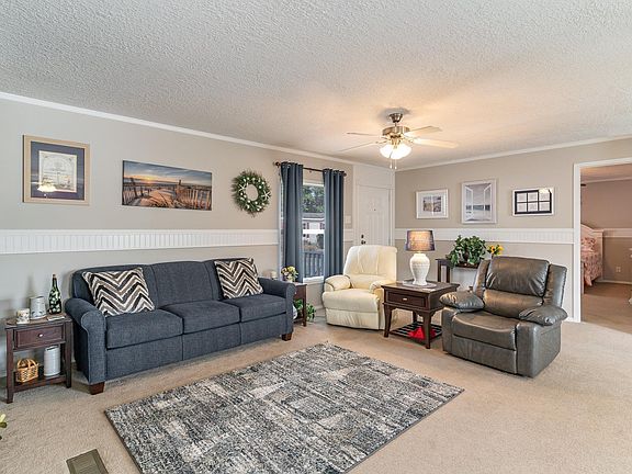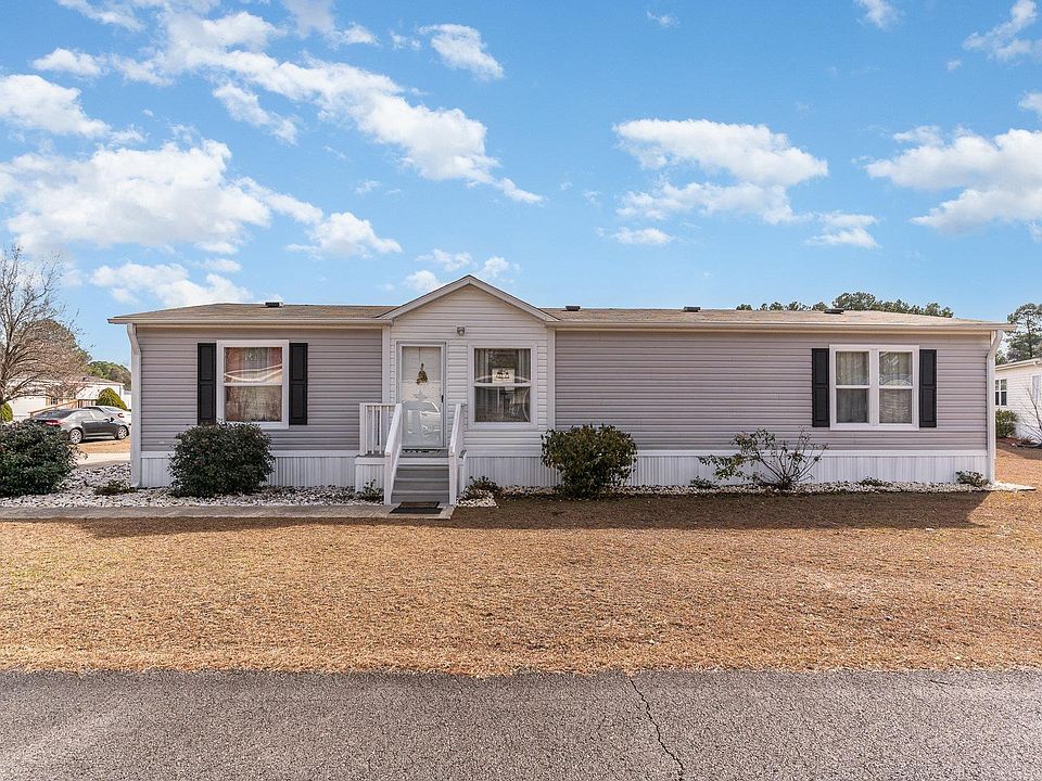 Beautiful, immaculate and fully furnished 3 bedroom, 2 bath home in the highly sought-after Conway Plantation community! Situated on a large corner lot, this home features a contemporary layout and split bedroom floor plan. Upon entering you are greeted by the neutral but modern color palette, custom wall treatments, 5" chair rail, and ceiling fans throughout. The spacious living room features a built-in entertainment center perfect for movie nights with friends and family. Just off the living room is the dining room with a huge window that allows the natural light to pour in and has room enough for a large family gathering! In the kitchen there is a separate work island that doubles as a breakfast bar, a large window overlooking the double stainless steel sink and plenty of cabinet space. And wait until you see the walk-in pantry! The separate laundry room is just beyond the kitchen and comes complete with a washer and dryer plus additional room for storage.  The master bedroom is not only impressive in size but includes a walk in closet, ensuite bath that has a walk-in shower big enough for two or more people, a separate soaking tub, and double vanity. The two additional bedrooms are bright, generously sized and share the second full bathroom.  Outside are flower beds, a concrete-tiled patio area -  perfect for enjoying a morning coffee or hosting a backyard barbecue and a 10' x 18' shed that has its own separate electrical panel making it ideal for a workshop or she-shed! Conway Plantation is conveniently located near shopping, dining, entertainment, and, of course, the beach! Residents have access to the community pool, playgrounds, barbecue areas, and clubhouse. Schedule a showing today! (Home is on leased land).