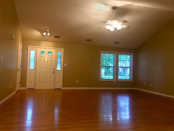 3 Bedroom 2 full bath split bedroom design one level home on a corner lot nestled in under the trees. Home features cathedral ceiling in the livingroom, vaulted ceiling in the master bedroom, kitchen bar, attached garage, covered front porch and more!