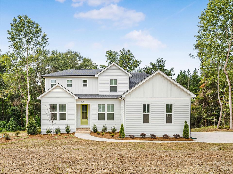 Move in ready new construction home with NO HOA! Discover the perfect blend of modern luxury and farmhouse charm in this exclusive home located in the coveted Clover School district. Act now for this modern farmhouse plan with a main floor owner's suite. Upgraded white linen cabinets and a navy blue island with granite countertops adorn the stunning open concept kitchen, which opens to the morning and great room. The master bath boasts a walk-in closet and bath-to-laundry access for ultimate convenience. Enjoy the private door leading from your bedroom to the covered and screened-in back porch, overlooking a spacious backyard on a 1-acre site. Additional first floor features include a flex room that can be a 4th bedroom with attached full bath, and dining room with butler's pantry. The spacious upstairs features a huge loft area, 2 bedrooms with Jack & Jill bath upstairs, and a large walk-in storage area. Don't miss out on this one!