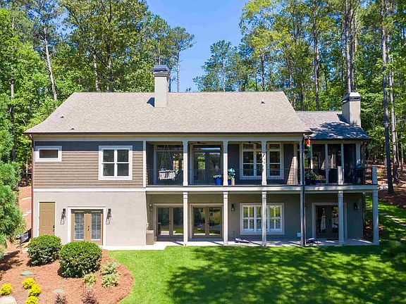 Reynolds Lake Oconee RENOVATED LAKEFRONT home with max doc located on a quiet cove in the coveted Creek Club/Lake Club area. You will be welcomed with beautiful landscaping, a winding circular drive and inviting front porch. This 5 bedroom 5 bath home is move in ready with main level features of 3 bedrooms and 3 baths, open floor plan, hardwood floors, stacked stone fireplace, exposed beams, L-shaped island, stainless steel appliances, spacious dining area, and access to the grill deck and screened porch with fireplace! The master retreat boasts lake views, sitting area and walk in closet with custom shelving. The main level also features guest suite with private bath and additional guest room with access to hall bath. Terrace level offers spacious family room, custom wet bar and media room with 85" TV, 2 additional bedrooms, bonus room, and shop/workout space with exterior entry. A must see lake front property! Seller is a licensed agent in the state of Georgia. Seller is making a Club membership available.