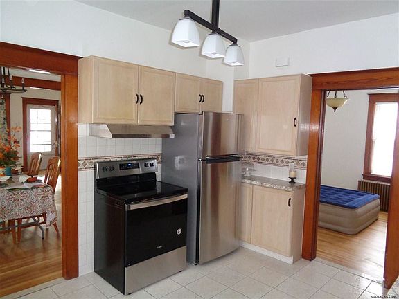 Spacious well maintained Craftsman home on quiet street is a must see. Freshly painted boasting 4 stained glass windows, original wood trim & refinished original HW floors on 1st flr. Updated eat in kitchen w/ ceramic flrs & walls, new SS appliances, walk in pantry & mudroom/rear entry. Renovated bath w/ vinyl planking. Full finished basement w/ game room, workshop & laundry area. (potential in-law) Large patio w/ decorative wall offer view of private yard w/ gardens. Long driveway leads to ong car garage. Insulated attic storage. Must see. Immediate possession too.