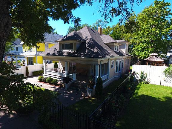 Victorian lovers, this is your dream come true. This 1½ story bungalow has been fully updated complete with master suite, yet maintaining its original woodwork, character and charm. From the unique slate floored porch you enter through the original door to the living room with gas fireplace. Envy the hardwood flooring throughout the main floor, wood columns, banisters and stunning ceiling with upstairs balcony. The formal dining is complete with chandelier of the times and, the dining set remains with the property. The kitchen has been fully updated complete with island, pan rack light fixture and all stainless steel appliances. You will want a chin strap on when you see the master suite complete with walk in closet, jetted tub, separate shower and dual sink vanity. Upstairs has two good sized bedrooms with hardwood flooring, a hall bath, and a balcony area that overlooks the living room. This area has built in book cases and would make for a great study/office area. The utility room is in the basement and so is a dry bar and family rec room with gas fireplace and stained concrete floor. This property sets between two huge two story Victorians in excellent shape and fronted by two gigantic walnut trees! You can enter this property through a remote controlled wrought iron gate and drive down your concrete driveway lined with Crepe Myrtle to your 2 car detached garage. The back yard is fully privacy fenced with a nice yard and landscaping. You are only a good walk or short drive north of Old Town and all its amenities. Be sure to check out the 3D interactive tour! All information deemed reliable but not guaranteed.