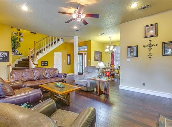 Your own Oasis on Two Lots! Soaring Ceilings greet you when you open the Front Door. Formal Dining is open to the Family Room. Windows overlook the pool and Deck. Second Living Area also overlooks the pool. Split Bedroom plan with Master Suite downstairs. Travertine Floors in Master Bath. Wood flooring in Family Room. Sprinkler System, Pool, Small Pond & Wood Deck in back yard. Oak Valley is in the Centennial District too!